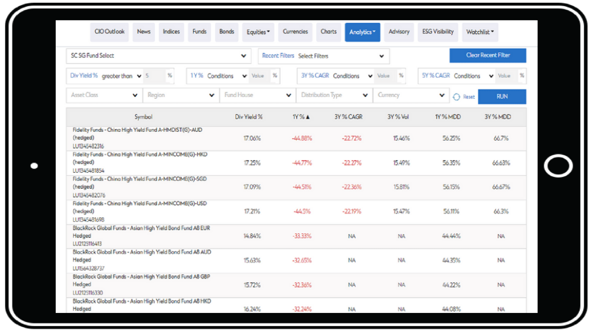 • For Bonds: Use ISIN or name. Typing “vodafone bond” will provide all bonds with the word vodafone in it.